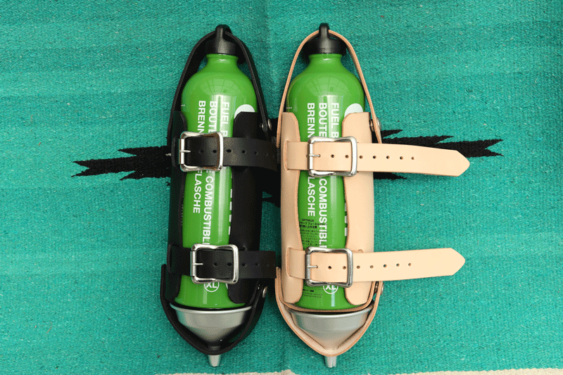 新しくなったサドルレザー製の携帯用ガソリンタンクホルダー1.5Lサイズです。