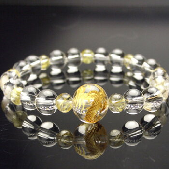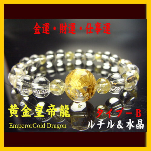 【送料無料】五本指の龍-【B】◆黄金龍◆皇帝龍ブレスレットルチル/金針水晶/金運/財運/ビジネス/仕事/風水グッズ/金竜/金龍/天然石/水晶/パワーストーン